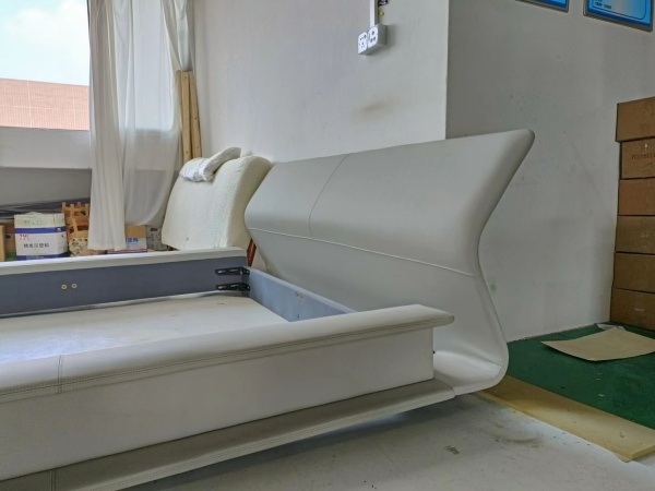 Constructed from high-quality materials, the bed ensures durability and stability. The frame is built with robust solid wood, capable of withstanding years of use without warping or weakening. The upholstery, available in luxurious leather or soft, breathable fabric (with customizable color options), feels smooth against the skin and is resistant to wear and tear, maintaining its pristine appearance over time. Intricate stitching details run along the curves, adding a touch of sophistication and highlighting the meticulous craftsmanship.