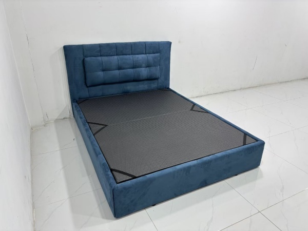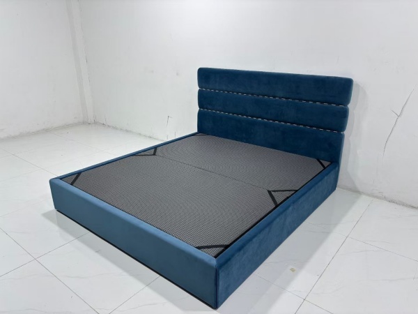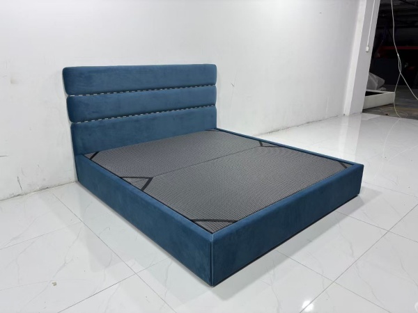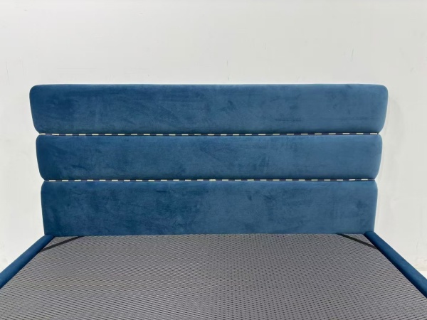 This minimalist bed frame is a paragon of understated elegance, perfectly suited for those who appreciate clean lines and functional design. Crafted with a focus on simplicity, the frame features a sleek, low – profile structure that exudes a sense of calm and order in any bedroom. The headboard, upholstered in a soft, deep blue fabric, adds a touch of sophistication without overwhelming the minimalist aesthetic. Its tufted detailing is subtle, providing just enough texture to break up the smooth surface while remaining true to the minimalist ethos.