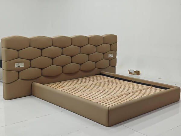 This high-end tufted bed features a three-dimensional honeycomb tufted headboard as its core design highlight, combining aesthetic and practical functions: