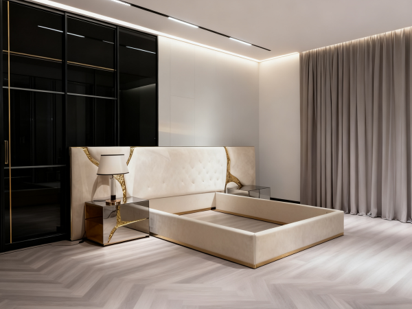 Whether dressed in crisp, white linens for a fresh, airy look or adorned with rich, patterned bedding to make a bold statement, this Luxury Low Bed Frame elevates the bedroom’s aesthetic to new heights. It perfectly combines artistic ingenuity with practicality, transforming any bedroom into a sophisticated and comfortable retreat that embodies the essence of luxury living.